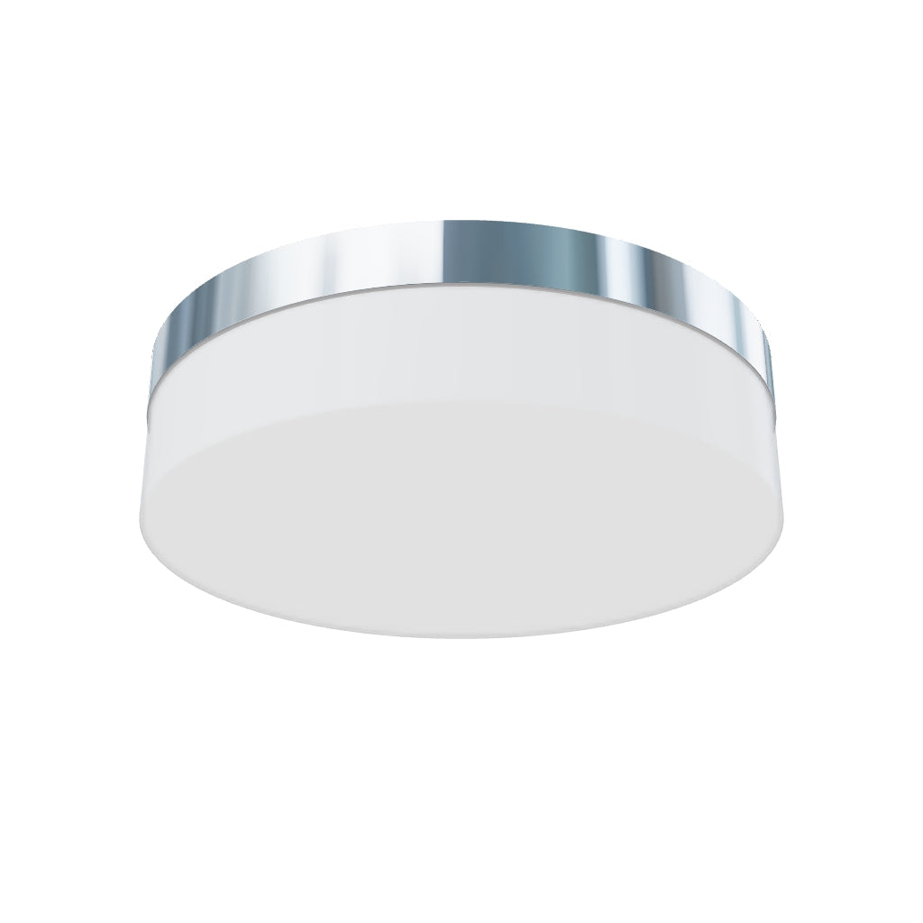 Okrogla stropna LED svetilka s senčnikom iz opalnega stekla. Stropna osnova je iz kroma ali mat niklja. Primerna za vlažno okolje.