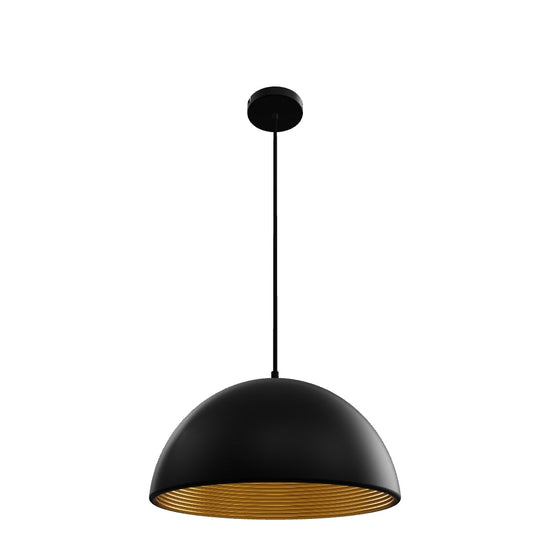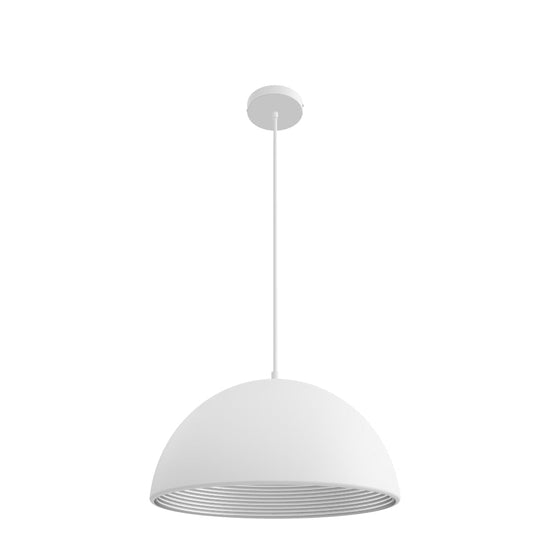 Viseča svetilka z lakiranim senčnikom in notranjim reflektorjem.