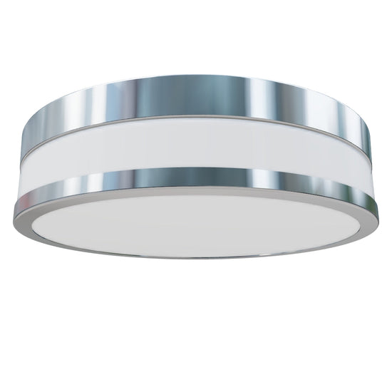 Okrogla stropna LED svetilka s ploščatim opalnim steklom v kovinskem okvirju. Primerna za vlažno okolje.
