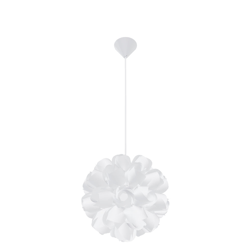 Viseča okrasna svetilka iz plastičnih elementov v obliki rož. Izdelek je potrebno sestaviti.