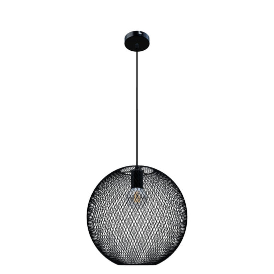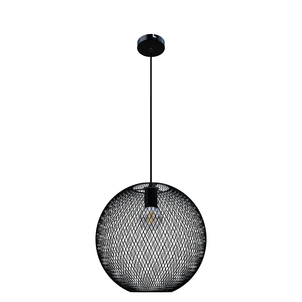 Viseča svetilka v obliki krogle iz fine žične mreže, primerna za okrasno LED žarnico z grlom E27. Največji možen premer svetlobnega vira znaša 9,5 cm.