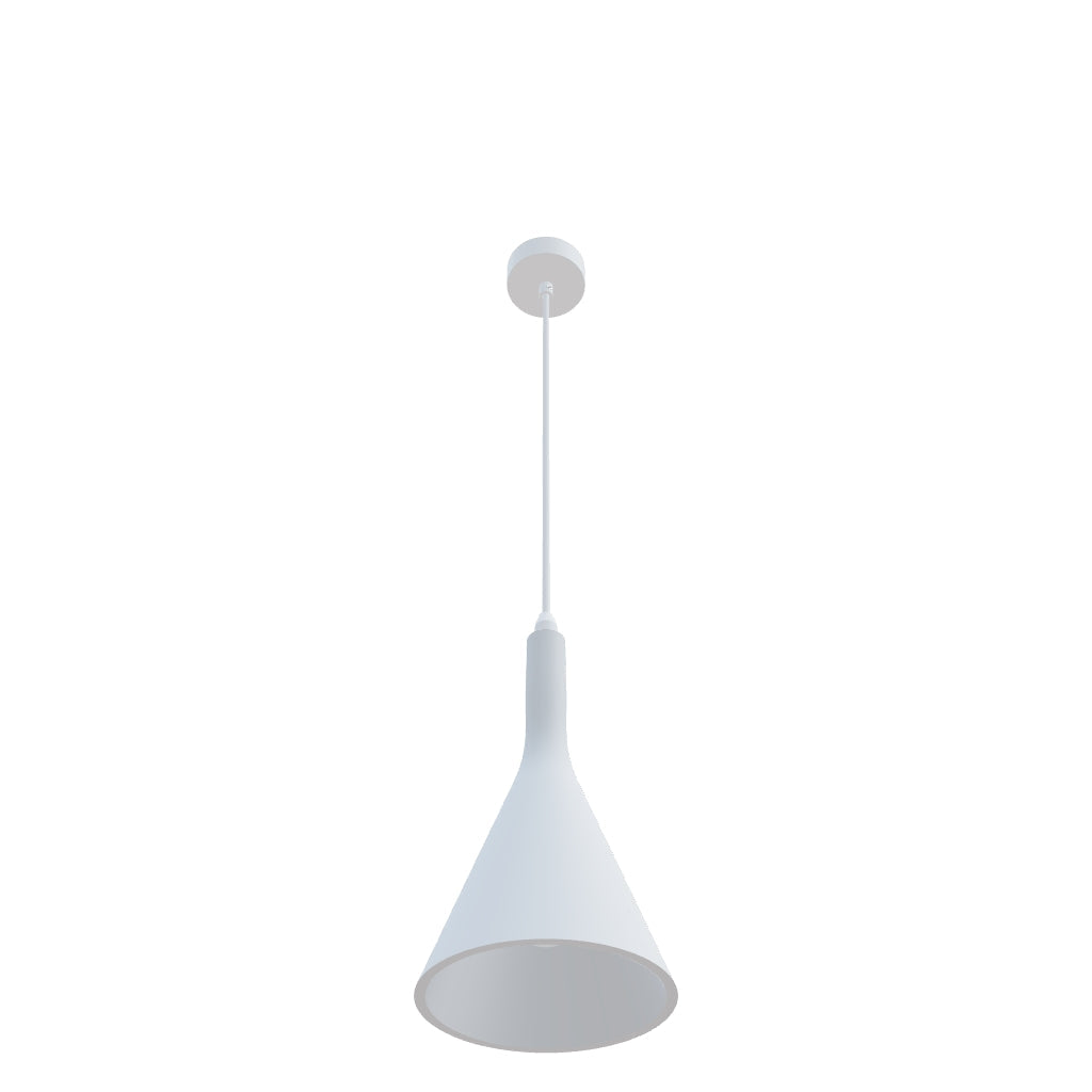 Viseča mavčna svetilka za LED E27 svetlobni vir. Stropna osnova je iz belo lakirane kovine. Možnost barvanja z barvo interjerja.