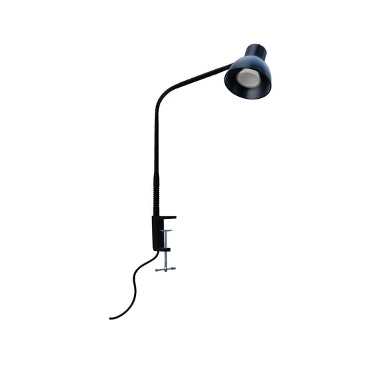 Namizna svetilka s C-sponko, zasnovana za montažo na mizo, združljiva z GU10 LED svetlobnimi viri. Največji razpon sponke je 5,5 cm.