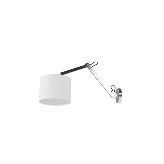Stenska svetilka s tekstilnim senčnikom in nastavljivo roko.