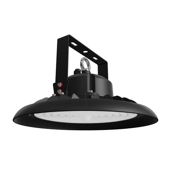Industrijska viseča svetilka High-Bay z visoko izhodnim LED, vključno z žico (0,5 m), obešalnim obročem in kablom (0,2 m). Za podaljšanje napajalnega kabla priporočamo uporabo IP BOX G12984.