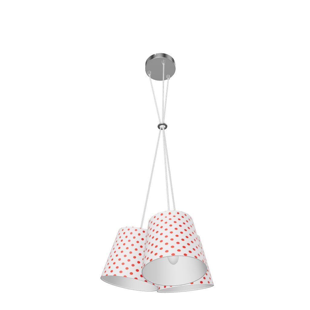 Viseča svetilka z eno osnovo in tremi tekstilnimi senčniki za tri E14 svetlobne vire.