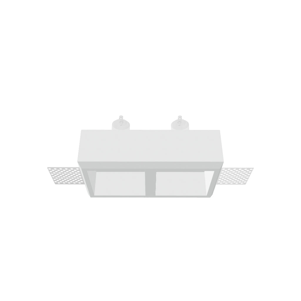 Mavčna svetilka z dvema krožnima odprtinama in brez okvirja. Možnost barvanja z barvo interjerja. Samo za nameščanje v mavčno ploščo.