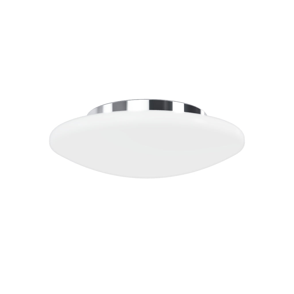 LED stropna luč iz opalovega stekla na kromirani podlagi. Primerno za uporabo v kopalnicah.