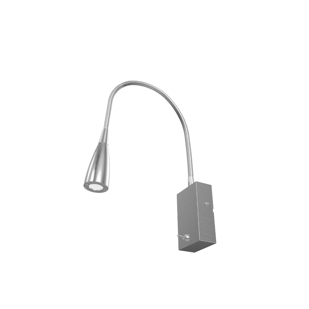 Stenska LED svetilka z gibljivim vratom in stikalom na spodnjem delu osnove.